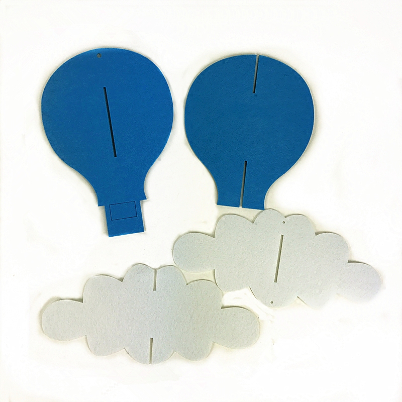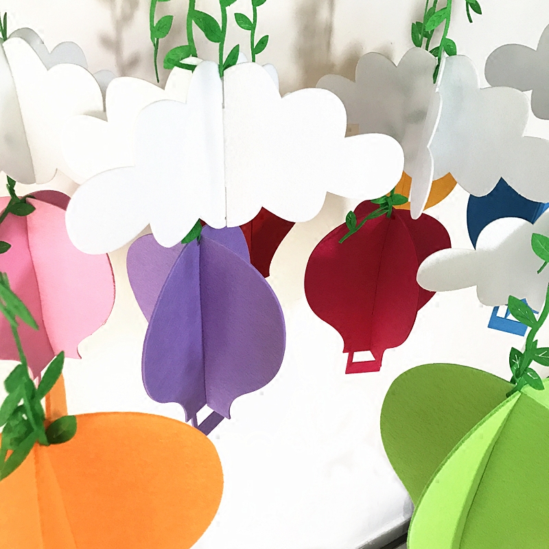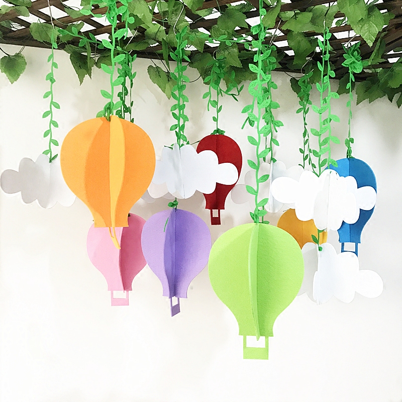 Kindergarten decoration environmental materials Non-woven creative color three-dimensional hot air balloon air hanging decoration white clouds green rattan