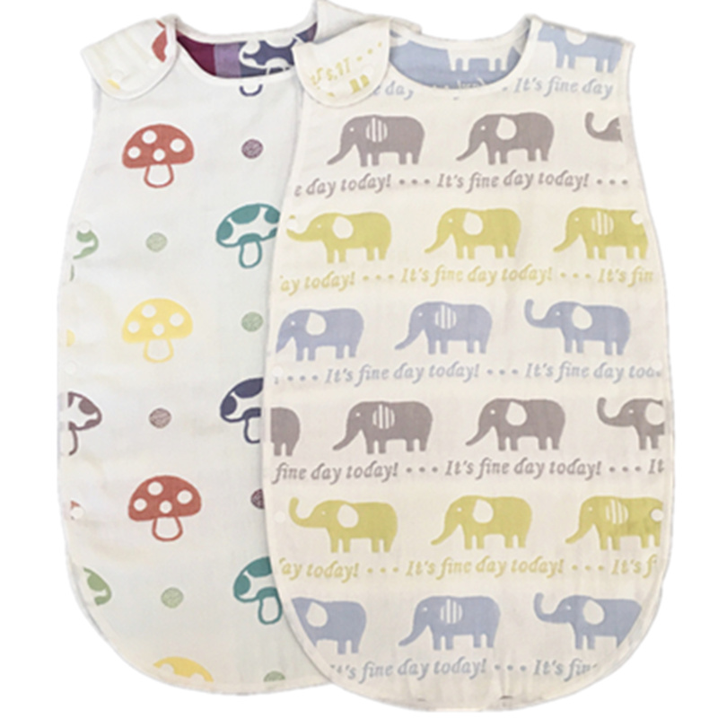 Children's cotton gauze six-layer vest sleeping bag baby one-piece pajamas spring and summer air-conditioned room anti-kick quilt thin section