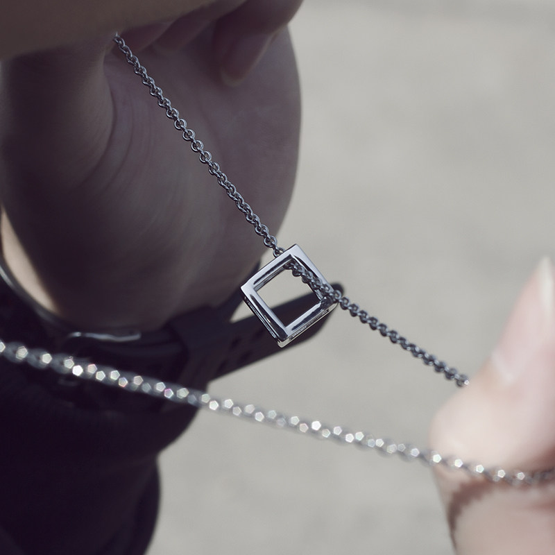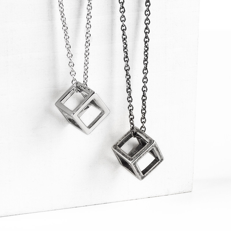 European Europe Tide Card Retro Quad Tridimensional Pendant Men and women Necklace Personality Couple Minimalist Sweater Necklace