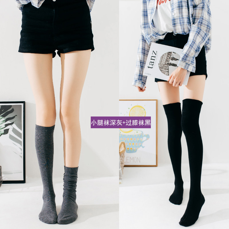 2 pairs of spring and autumn calf socks over the knee socks Female Korean middle tube socks College style half pile pile long socks high tube socks