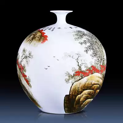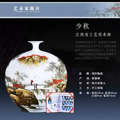 Shaoqiu hand-painted-underglaze "Home in the Mountains" big pomegranate bottle-with collection certificate sent rotating base Shaoqiu hand-blue and white porcelain "Xi Shan Visiting Friends" large pomegranate bottle to send rotating base Shaoqiu hand-painted