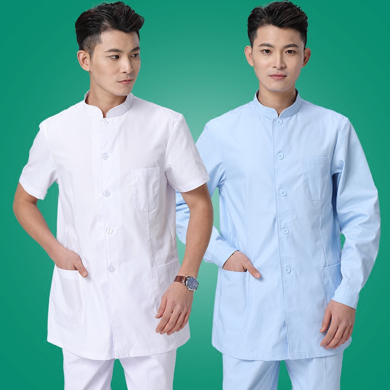 Short male doctor's gown white short-sleeved white coat winter and summer long-sleeved pharmacy doctor pet pedicure overalls