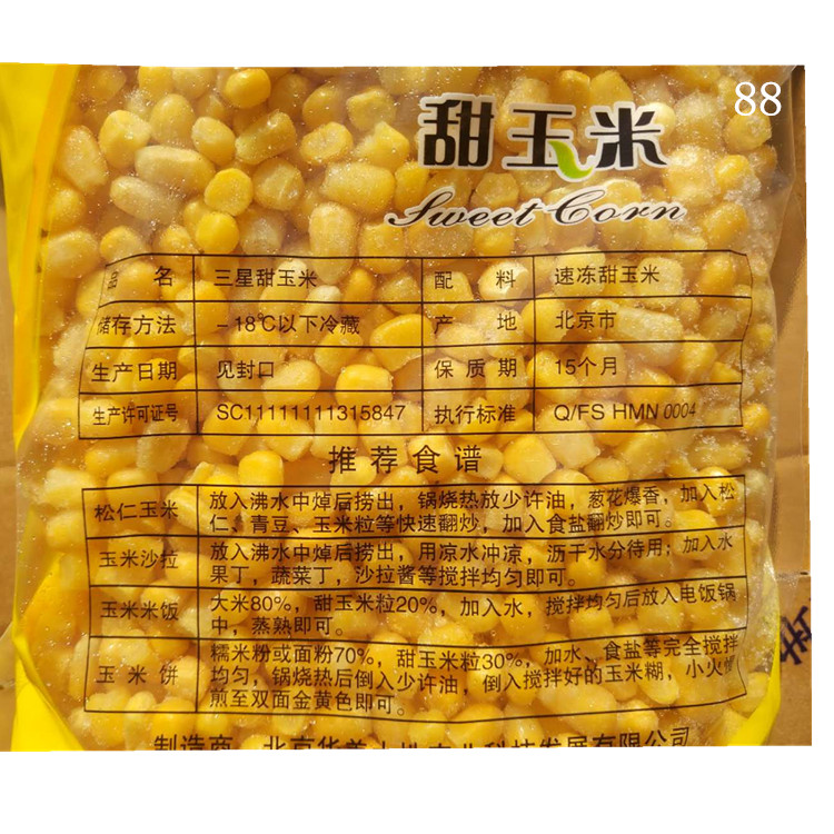 Only send Beijing Samsung frozen sweet corn kernels Huamei Earth frozen corn kernels 1kg vegetable salad full