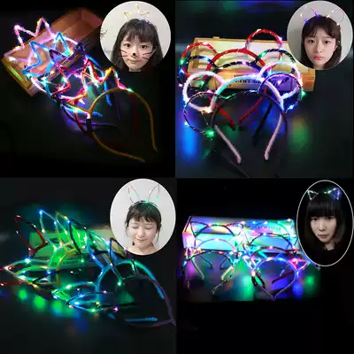 Luminous garland children's flashing cat ears headdress net red hair hoop horns luminous night market floor push small toy supply