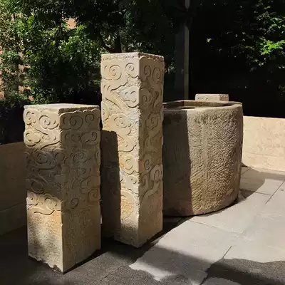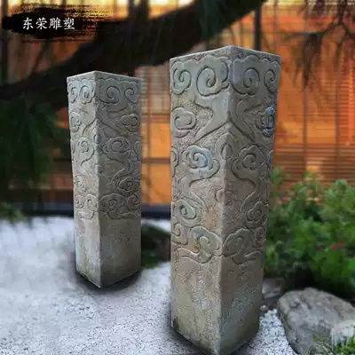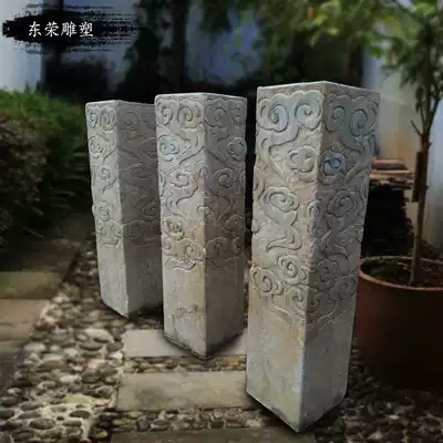 Stone carved pillars blue stone old auspicious cloud column base stone decorative stone pillars antique horse pile Chinese ornaments