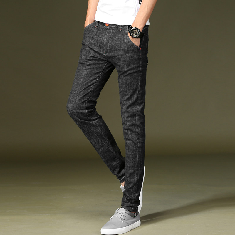 2021 new fall/winter blue jeans men's Korean version slim small leg pants tide brand plus fleece casual stretch pants