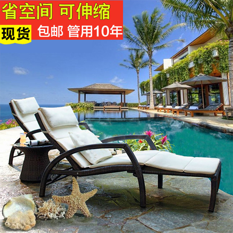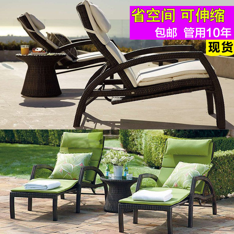 Outdoor bed rattan chair Balcony Folding lounger Pool lounger Leisure beach chair Outdoor Garden Lunch break