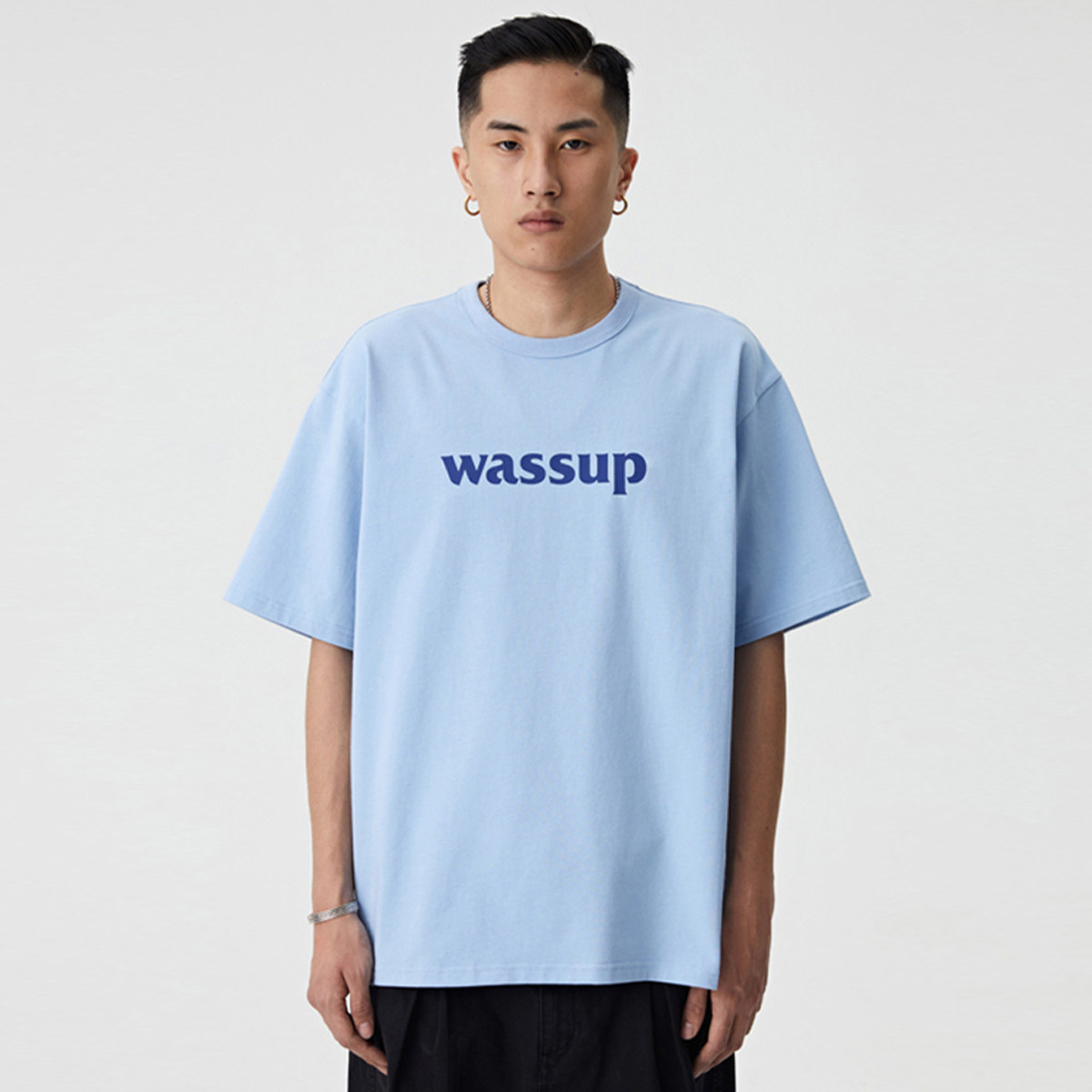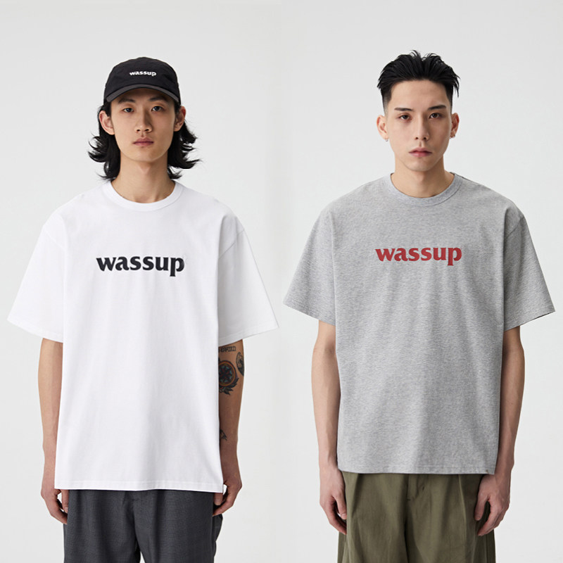 WASSUP short-sleeved T-shirt crew neck summer trend simple printing solid color pure cotton casual loose men and women's clothing couple