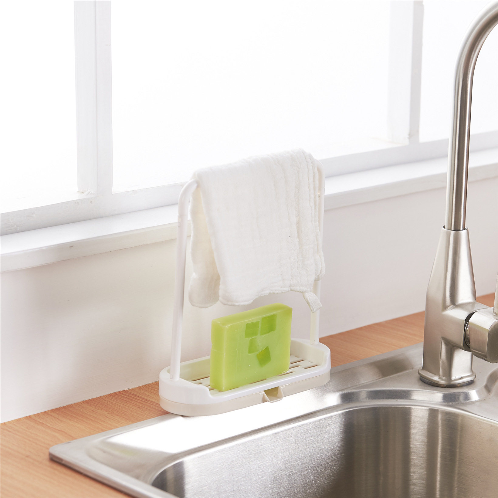 Kitchen countertop storage shelf Rag dish cloth Drain rack Non-perforated towel cloth rack Rag pylons