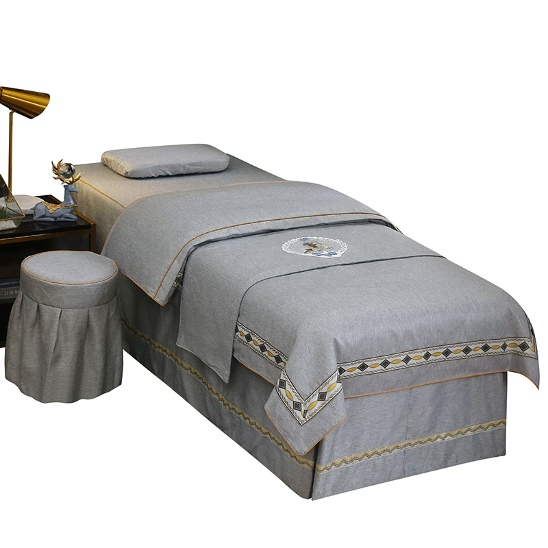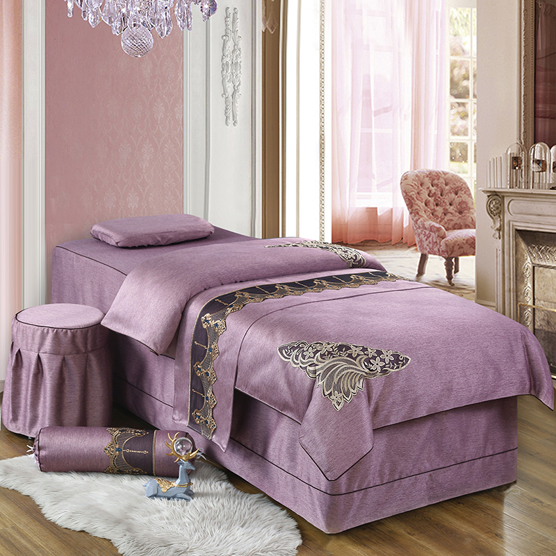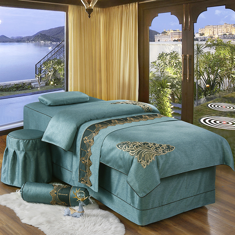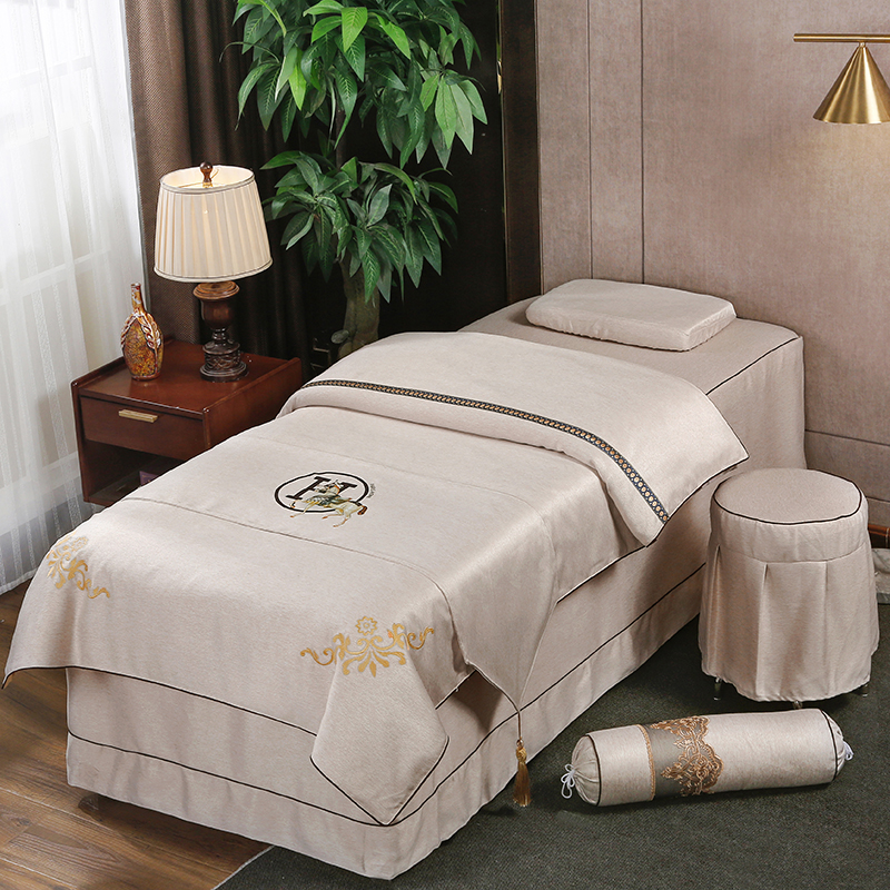 High-end beauty bed cover with four sets of upscale pure cotton linen nets red Korean style beauty salon shower head massage bed jacket light and luxurious