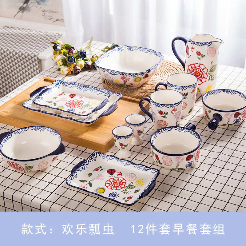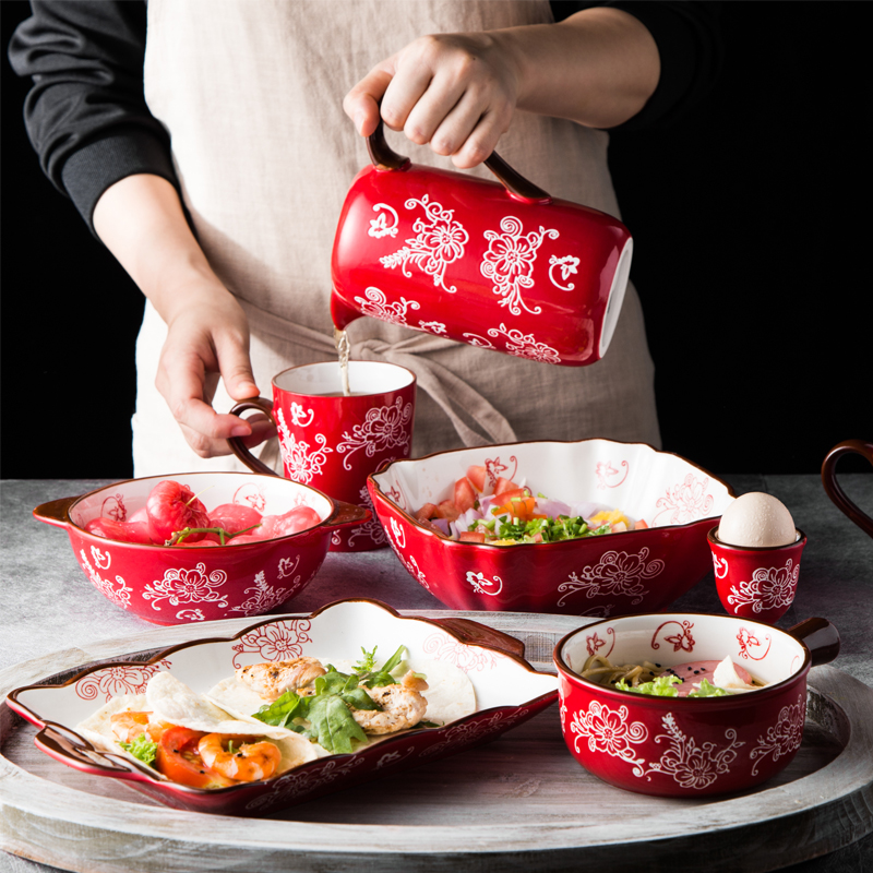 Huafu Chinese dish set 2-person set wedding gift couple ceramic tableware set set western dish set household
