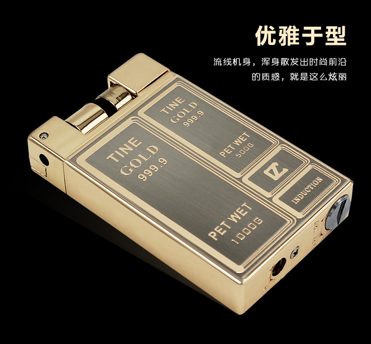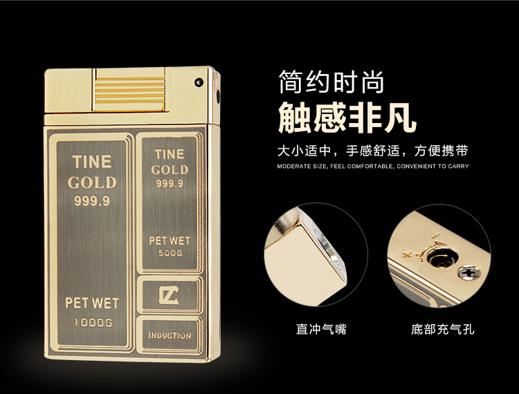 New high-end gold brick touch induction lighter inflatable windproof straight red flame lighter custom lettering male