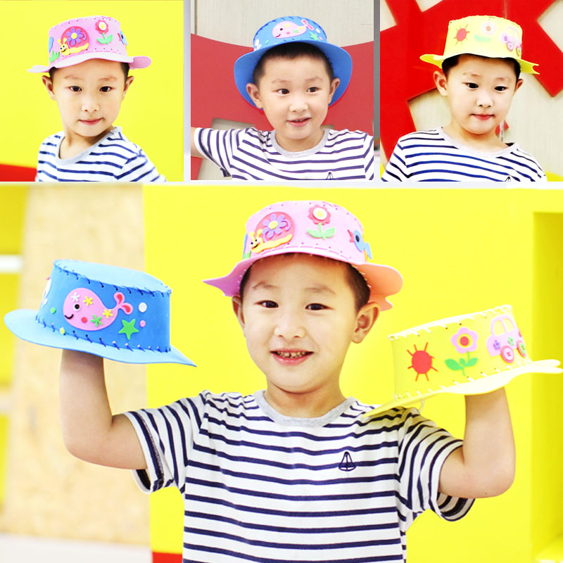 Children's handmade EVA hat DIY three-dimensional adhesive painting creative sewing educational toy kindergarten material bag