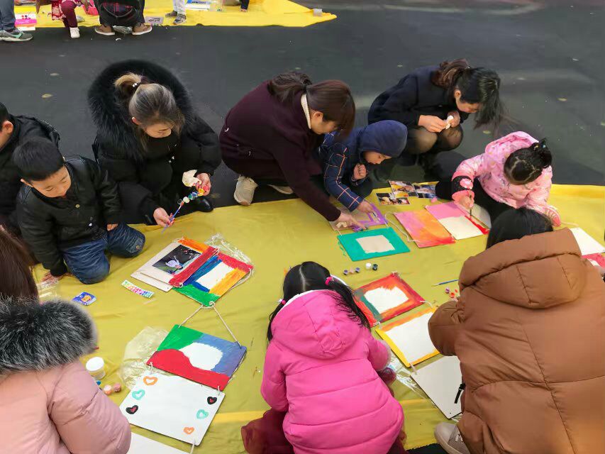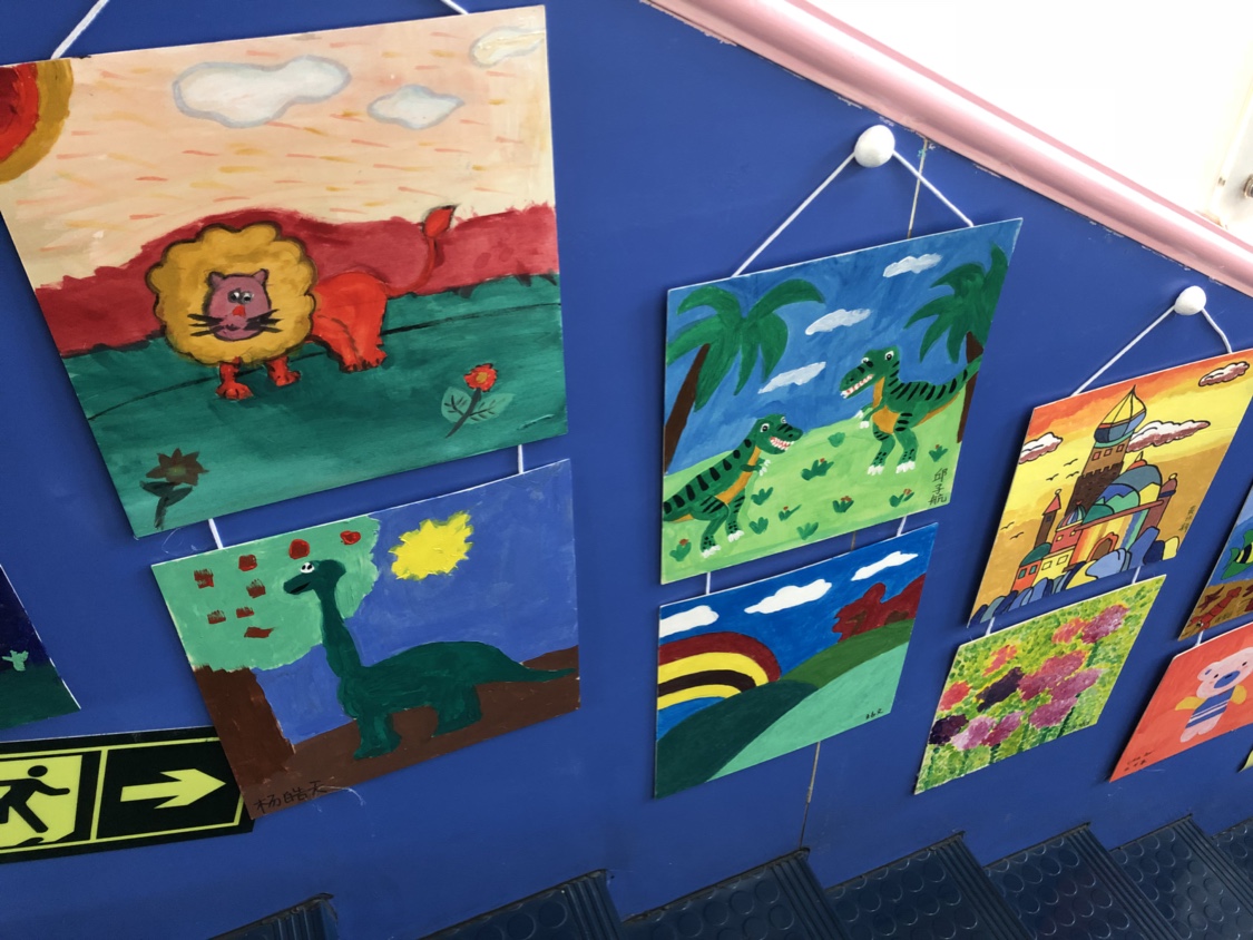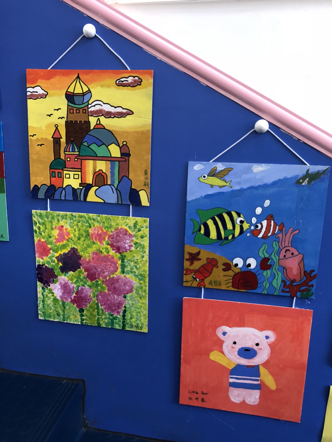 Kindergarten handmade creative materials Children diy painted area corner listing works display photo frame Three-layer wooden hanging board