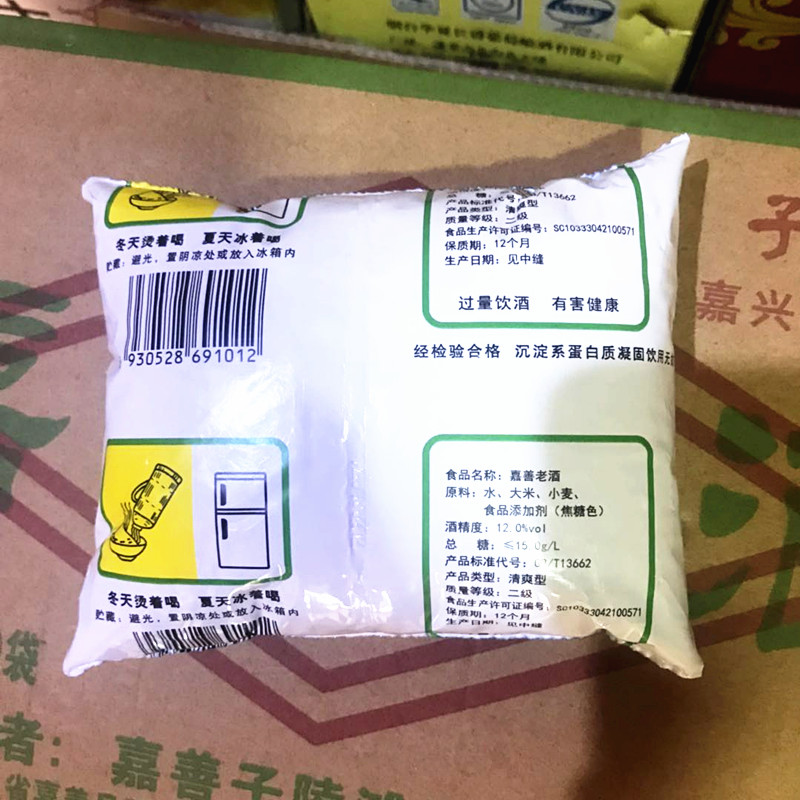 Jiashan Old Wine 400ML*40 Bag Mausoleum Bag Yellow Wine Bag with 12 degrees Old Size of Jiashen Special Production