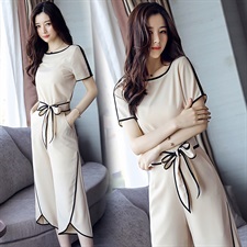 2022 Summer Dress New Foreign Pie Suit Woman Korean version Temperament Small Sub-Shoulder Fashion Broadlegged Pants Two-piece Set