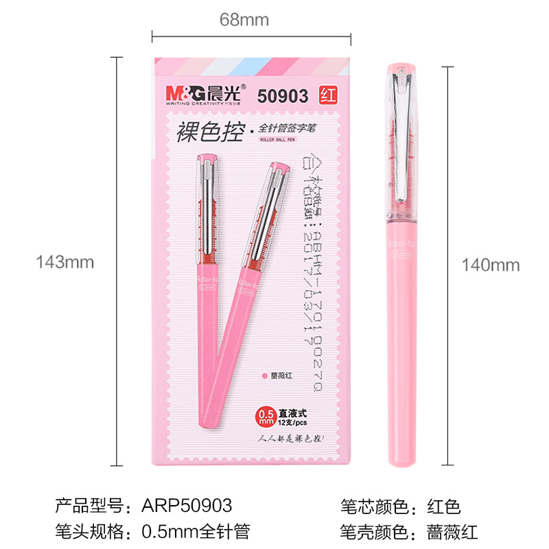 Morning light stationery ARP50903 Lancolour 50803 full needle tube 0 5mm straight liquid style naked color control walking bead pen needle tube pen carbon black 50901 red vegan elegant-Taobao