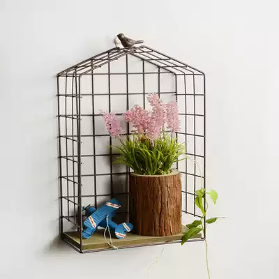 Creative ins Nordic wrought iron shelf home shop partition wall wall hanging frame wall wall decoration vintage bird cage