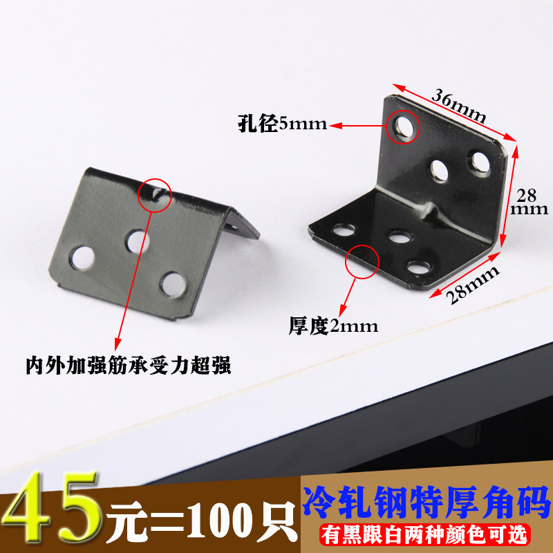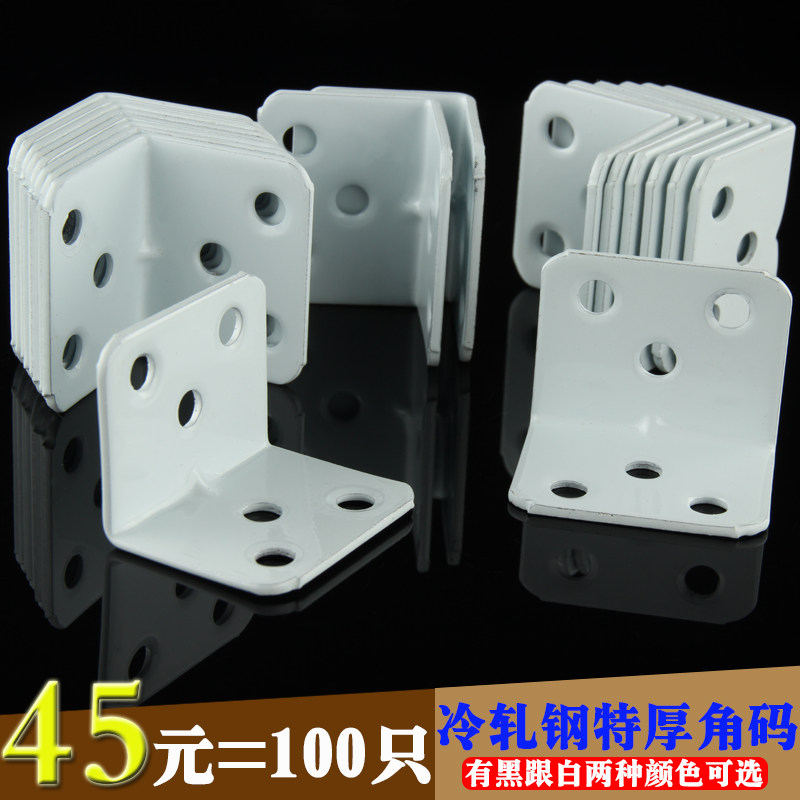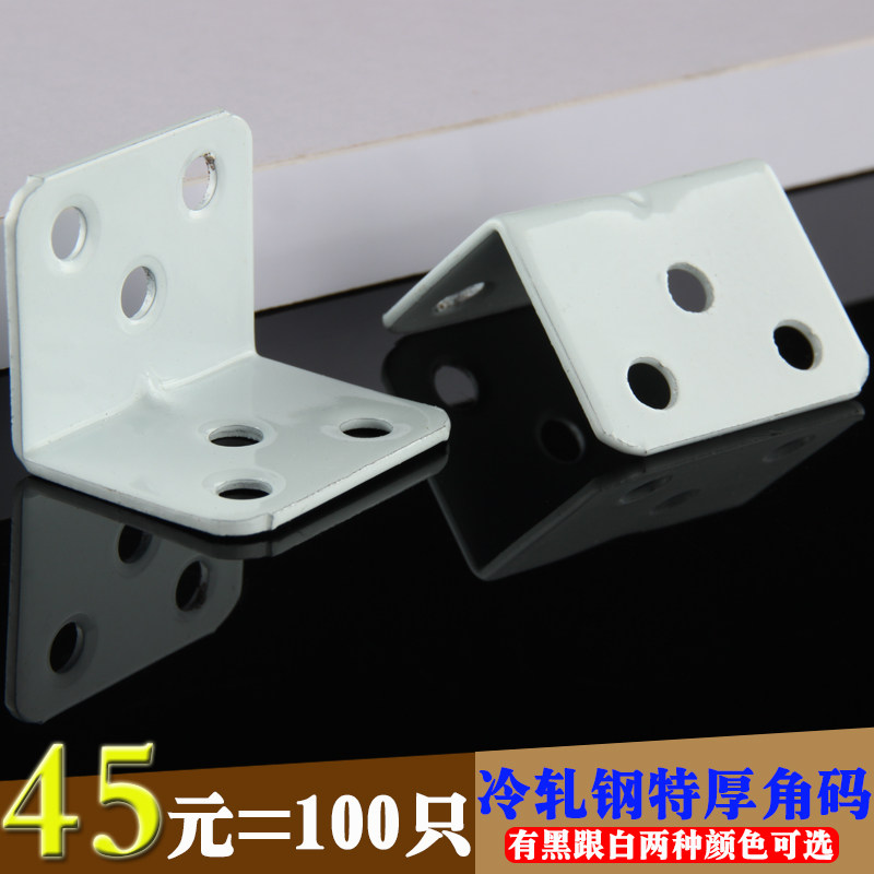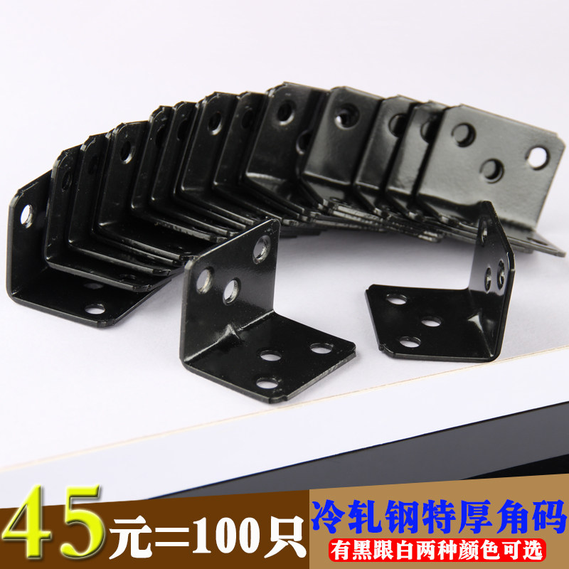Cold rolled steel black and white corner code thickened baking paint 90 degree right angle connector L angle code iron wooden board table and chair corner code
