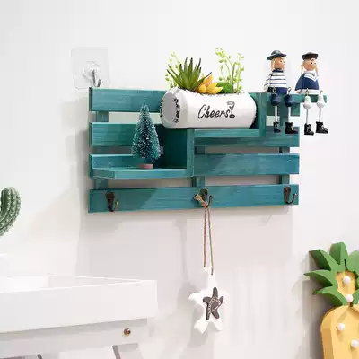 Creative solid wood wall non-perforated shelf shop door rear wall decoration porch key adhesive hook