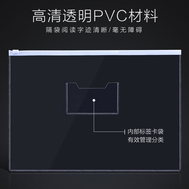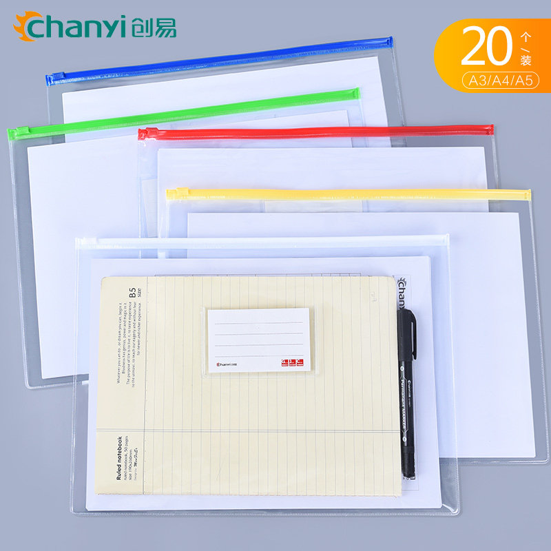 Chuangyi A3 pull side bag a4 file bag transparent plastic office supplies student stationery paper 8K picture album clip storage zipper bag