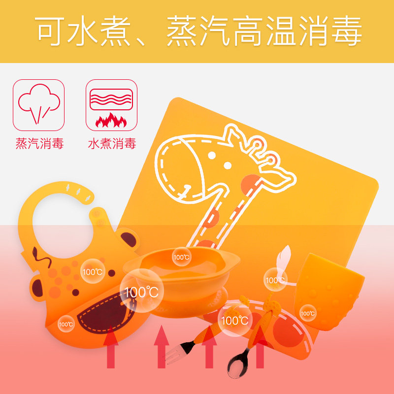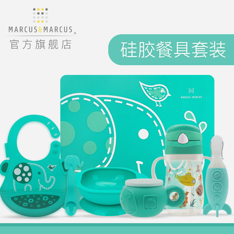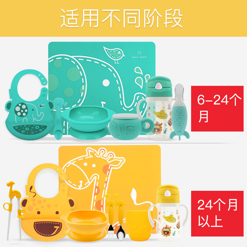 (Pre-sale) Marcus Baby Kids Tableware Baby Bowl Silicone Bib Suction Cup Bowl Complementary Food Learning Chopsticks Fork