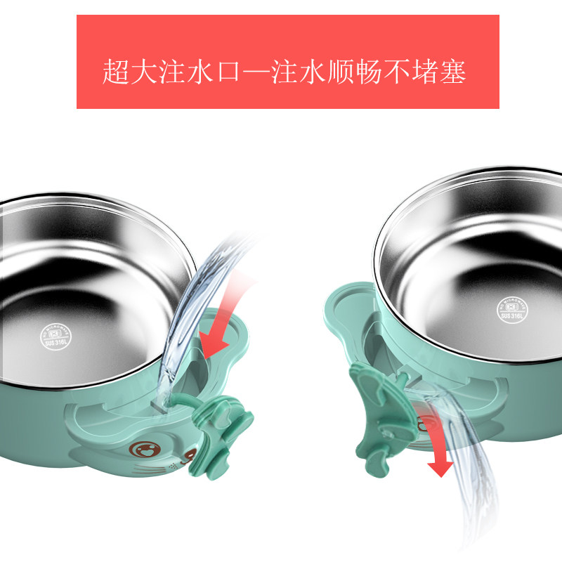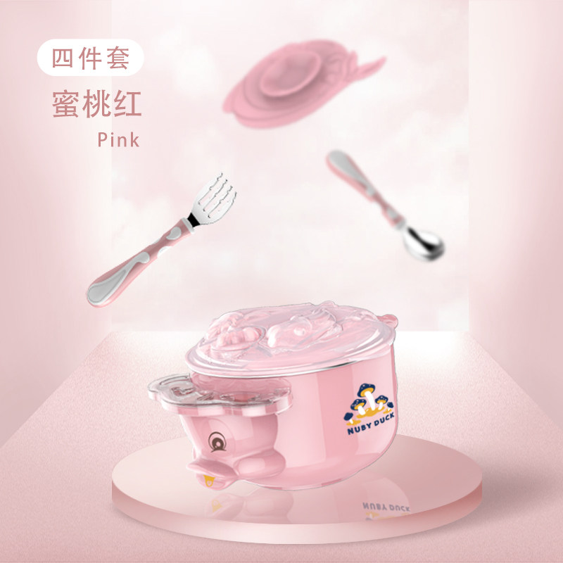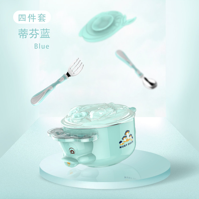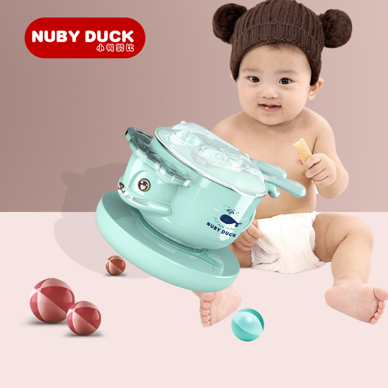 Duckling Nubi baby tableware anti-fall suction cup non-staple food bowl spoon set water injection insulation stainless steel set 4 pieces