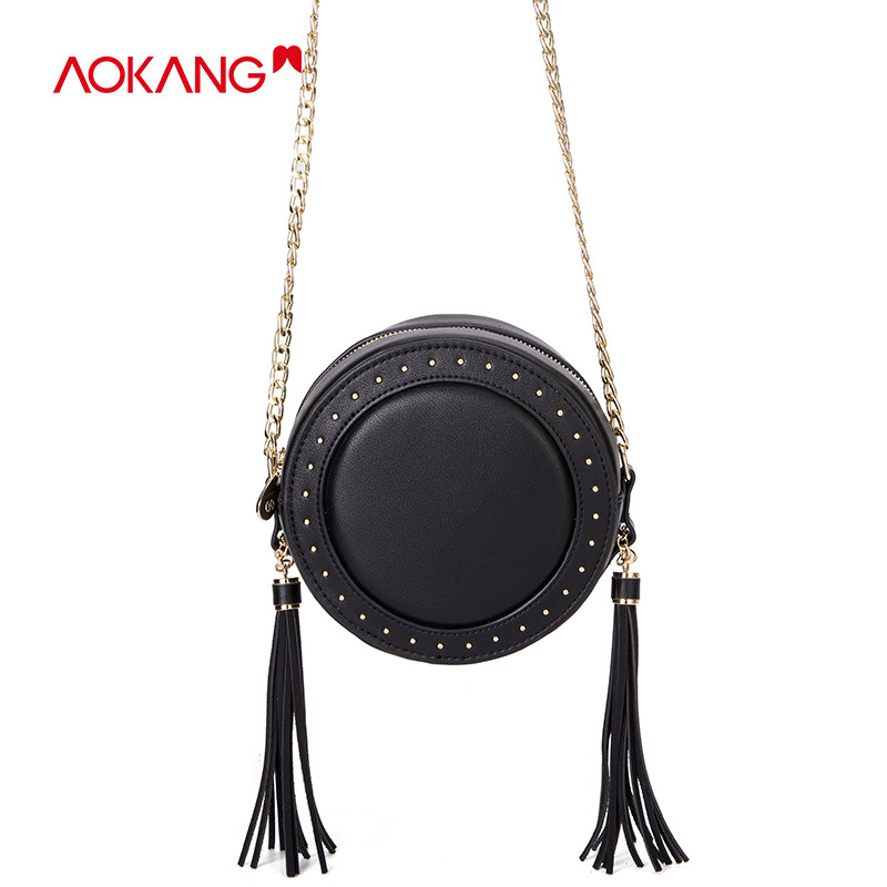 Aokang's new spring and summer women's shoulder bag small round bag shopping mall with the same style simple fashion women's bag Messenger bag