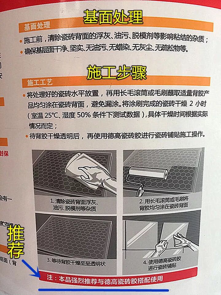 Strong effect tile back on the back of the tile