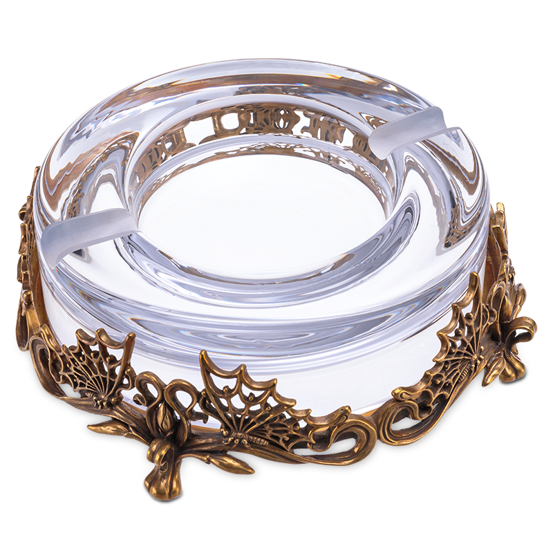 Cigar Tobacco Ashtray Flowers Butterfly Dance Bronze Sculpture Base Eu Style Austrian Crystal Creativity Living Room Office Decoration