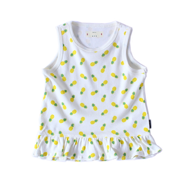 Children's summer slim fit pure cotton sleeveless female treasure skirt Knitted Vest Printed Round Collar Fashion Girl dress minimalist