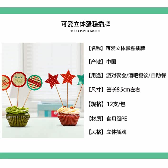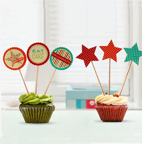 Stereo pentagram Happy birthday cupcake Cupcake Decoration Inserts sweet taster Baking Inserts Party Arrangement Supplies