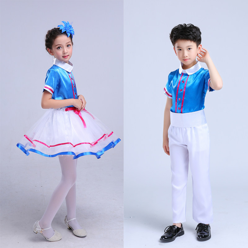 Girls Long Sleeve Short Sleeve Dress Men's Short Sleeve Men's Long Sleeve Girls Choir Dress Black Leather Shoes Blue Women's Short Sleeve Blue Men's Short Sleeve