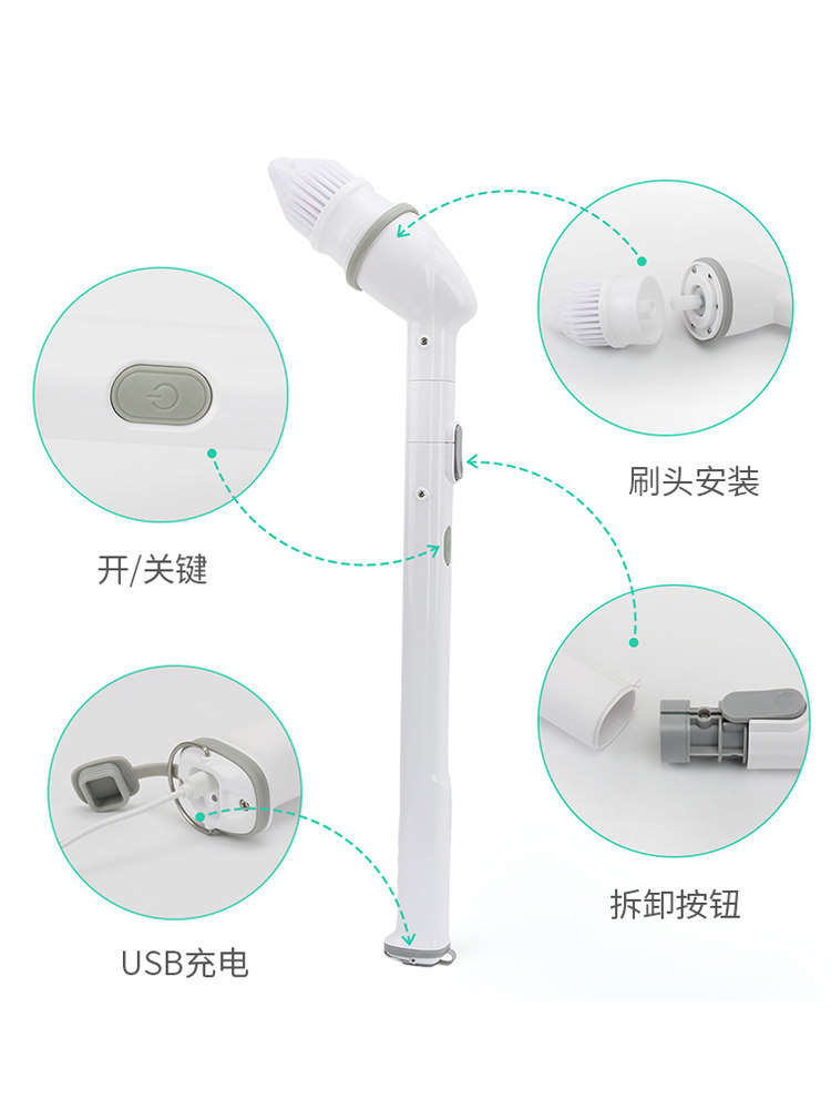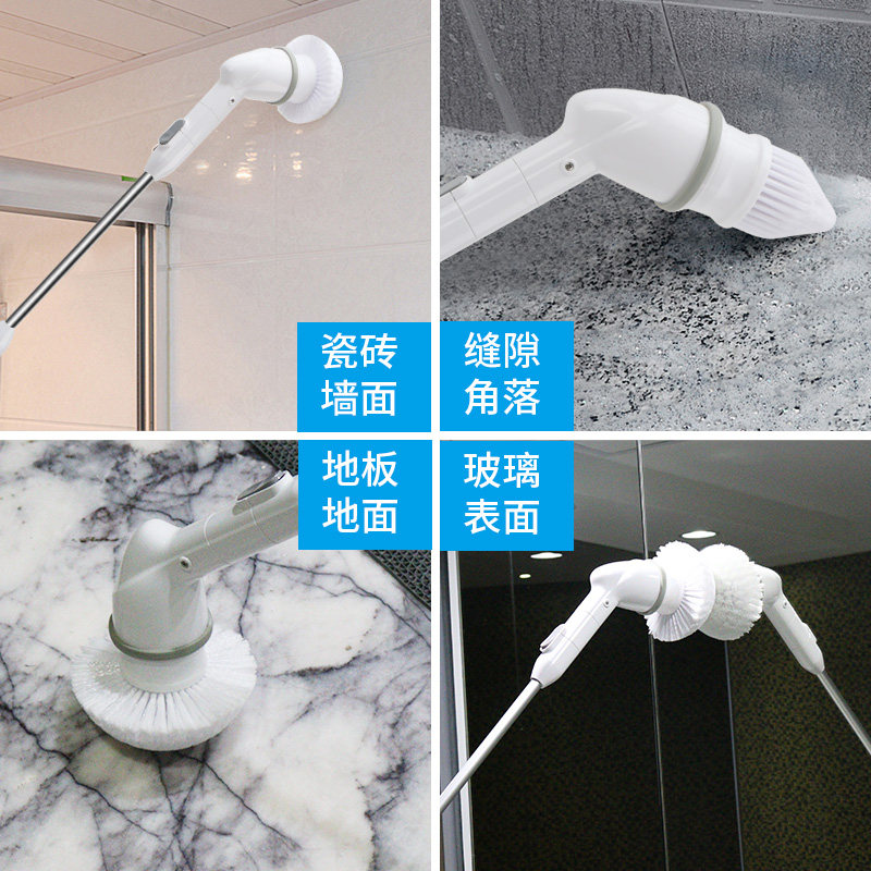 Poly cleaning brush long handle electric wireless multifunctional brush bathroom cleaning tool can be changed brush head floor brush
