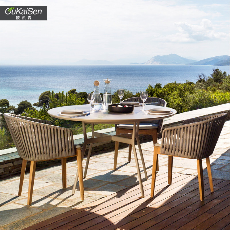 Leisure rattan outdoor dining table and chair combination furniture garden leisure courtyard outdoor terrace anti-corrosion teak bar