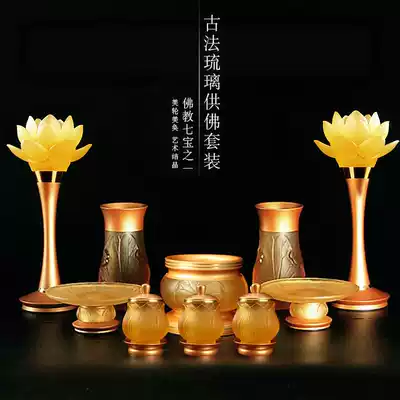 Taiwan ancient method colored glaze lotus lamp household pure copper for Buddha lamp colorful Buddha lamp led long light supply lamp lotus lamp