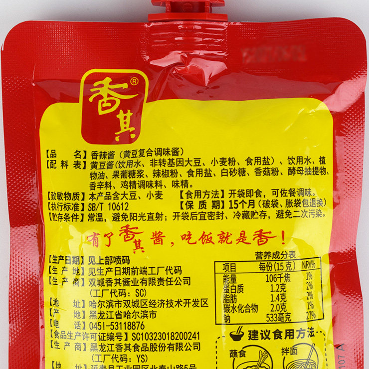 (Sunshine Cereals and Oils) Xiangqi Cooked Sauce Xiangqi Spicy Sauce 128g Northeast Soy Sauce FCL 30 Bags