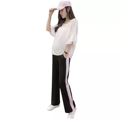 Pregnant women's pants Pregnant women's wide-legged pants Spring and autumn casual loose sports all-match outer wear straight pants trendy mom belly pants