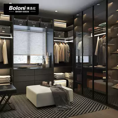 Boloni modern light luxury whole house wardrobe walk-in cloakroom aluminum frame glass wardrobe custom deposit