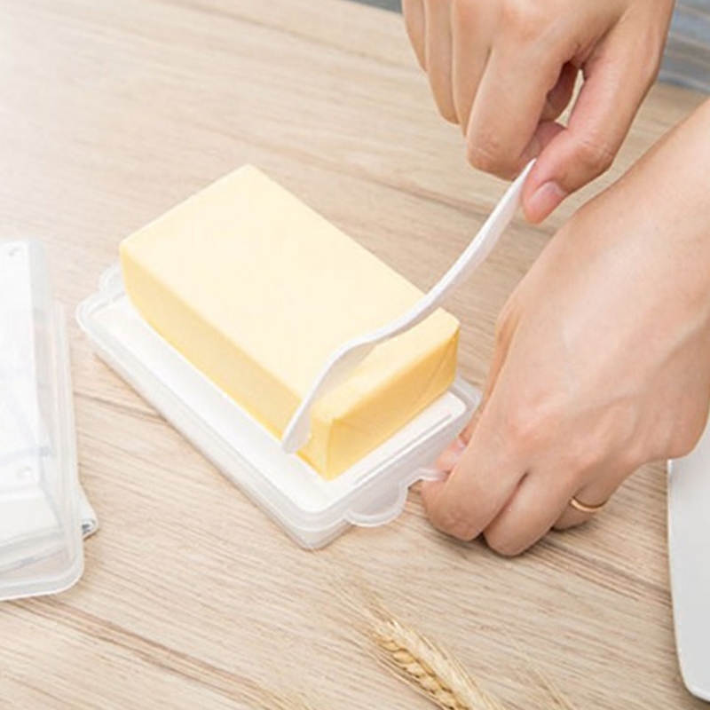 Japanese butter box with lid Storage box Butter storage box Plastic with knife and spoon cutting can be stored Built-in