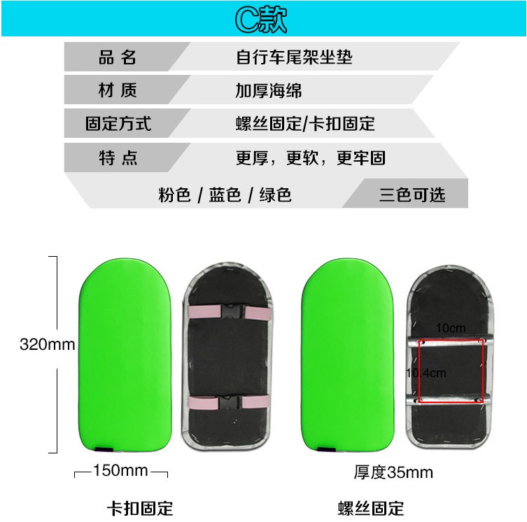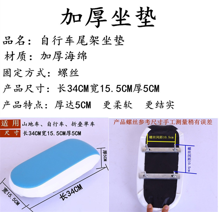 Bicycle rear seat cushion Manned mountain bike shelf Rear seat thickened padded bicycle comfortable seat Saddle plate Seat plate