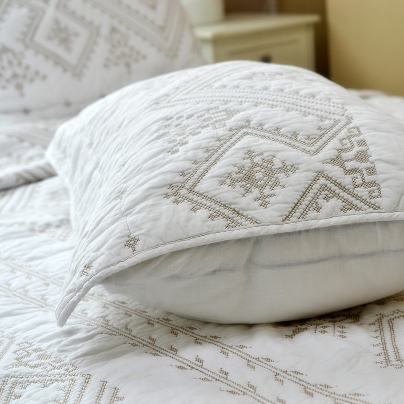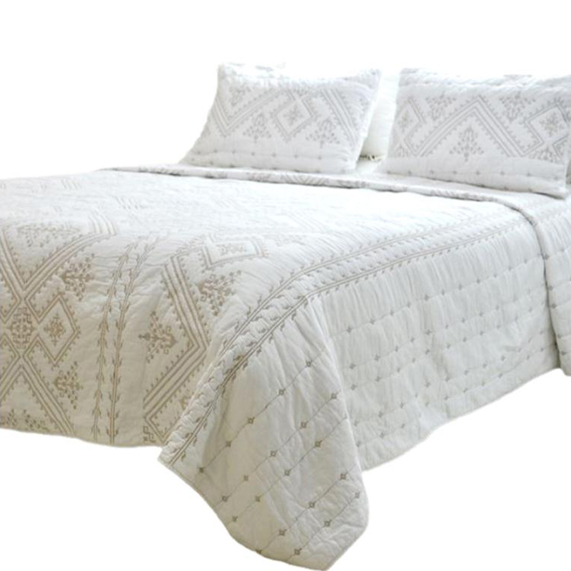 Outlet pure cotton European-style bed cover white embroidered quilted quilted by three sets full cotton air conditioning by summer cool by double bed