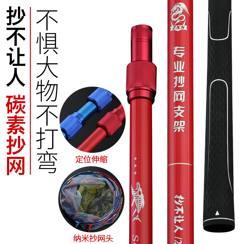 Fishing fishing net rod Super hard ultra-light 2 1 2 4 2 7 meters carbon fishing net Telescopic fishing net rod folding fishing net head