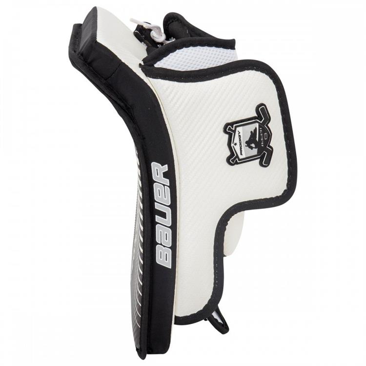 Bauer children's ice hockey goalkeeper blocking hand Bauer children's ice hockey goalkeeper grabbing equipment protective gear