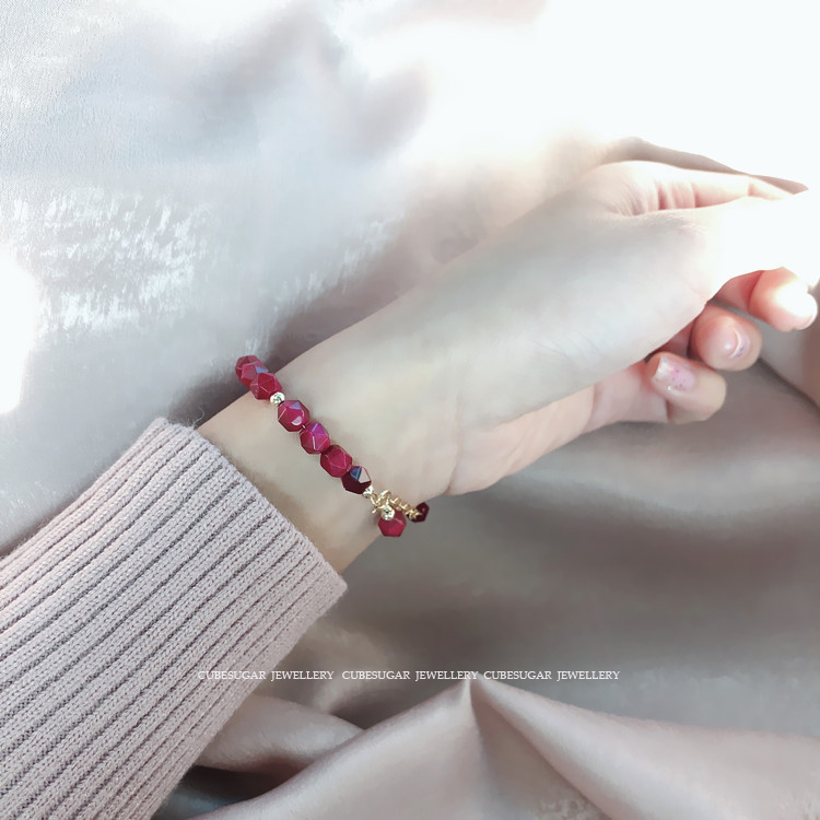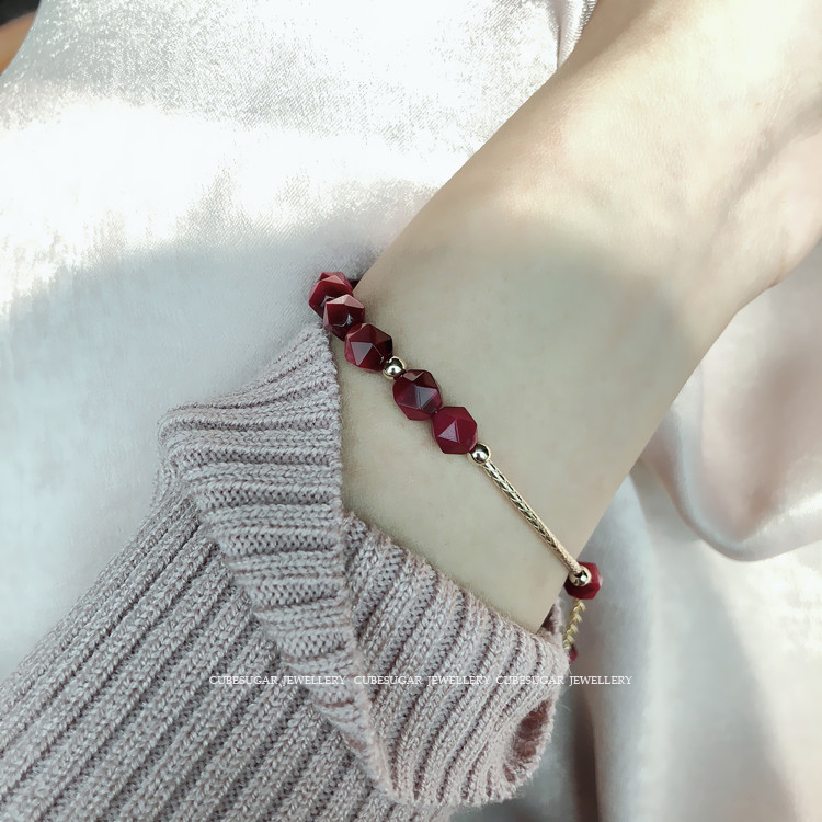 White peach blossom American 14k gold rose red geometric section Tiger eye stone niche design hand string hand chain