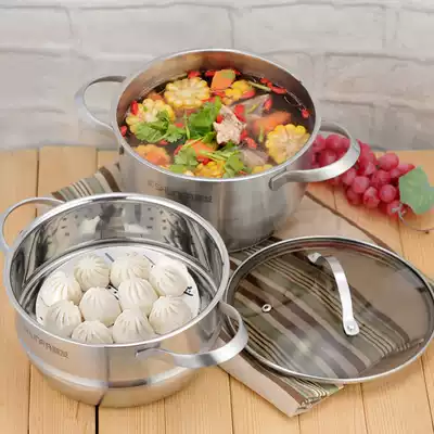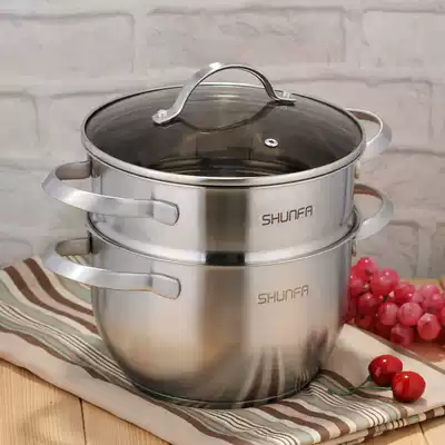 SF shun hair grass 304 stainless steel 2-layer steamer German craft thickened double-layer milk pot soup pot with steamer