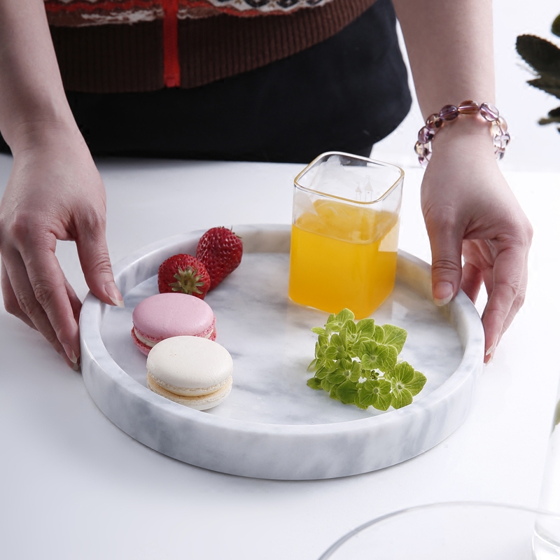 Xun Shang Marble tray Nordic simple storage desktop round tray Jewelry bathroom storage tray