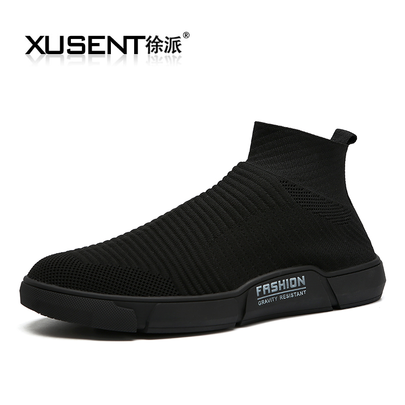 Socks shoes Men's autumn Korean version trendy black breathable elastic midcylinder men's shoes Han version 100 hitch a male shoe for men's shoes