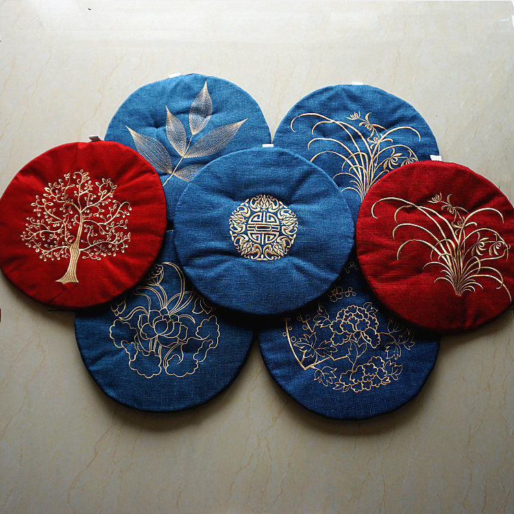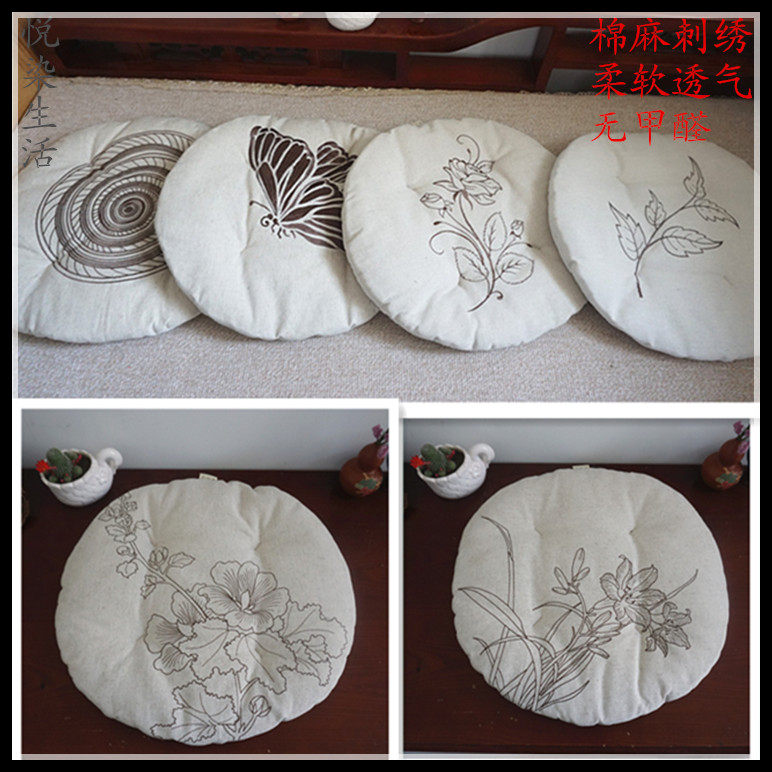 New Chinese cotton linen cushion chair mat Japanese tea ceremony cushion embroidery thickening futon