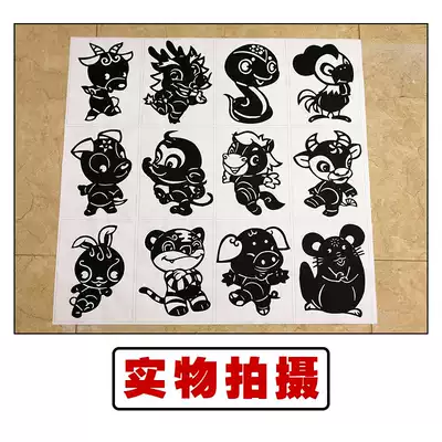 12 Chinese zodiac paper-cut pattern black and white print manuscript simple handmade cartoon zodiac paper carving pattern practice material